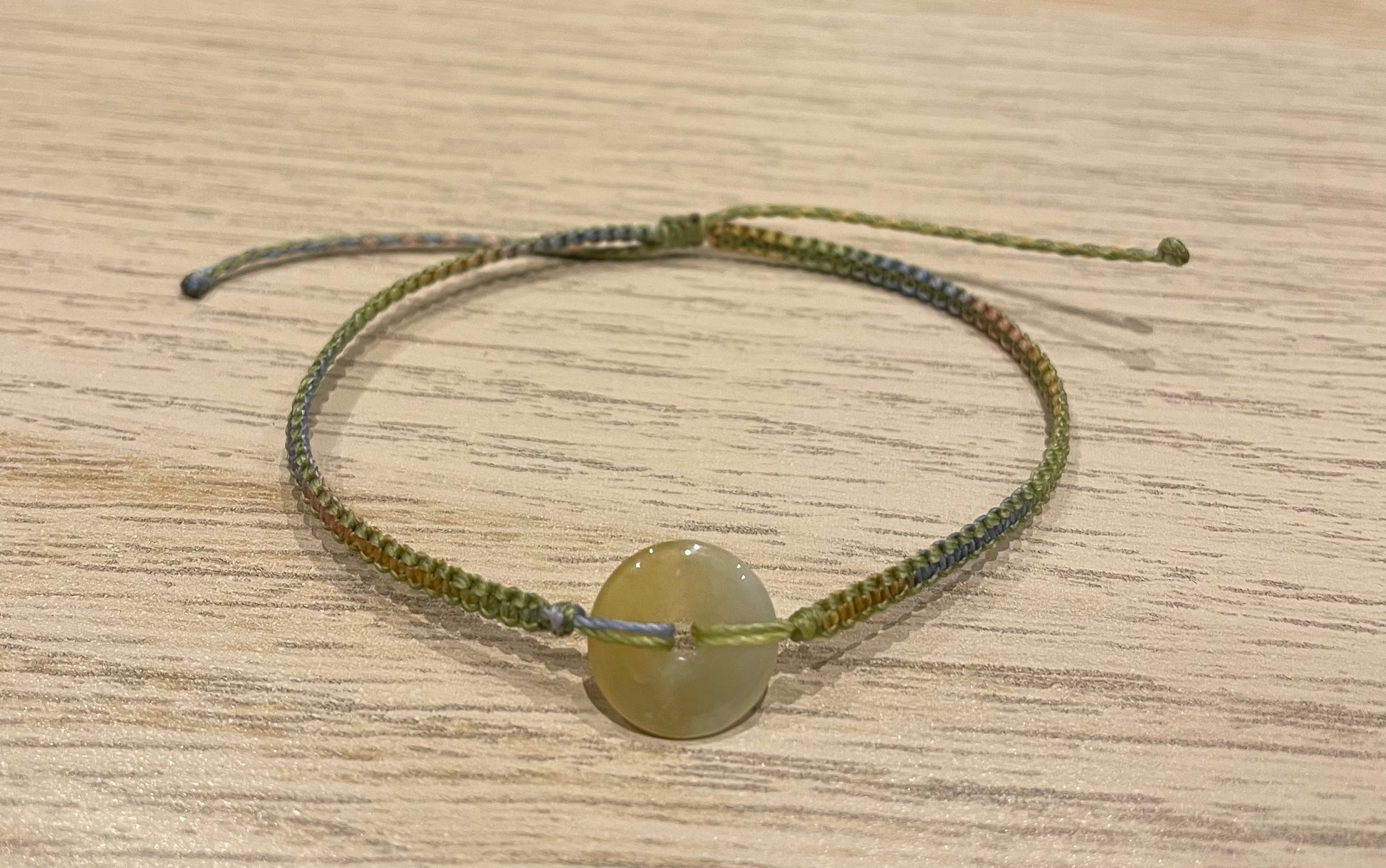 Handmade bracelet with a 12mm yellow jade donut
