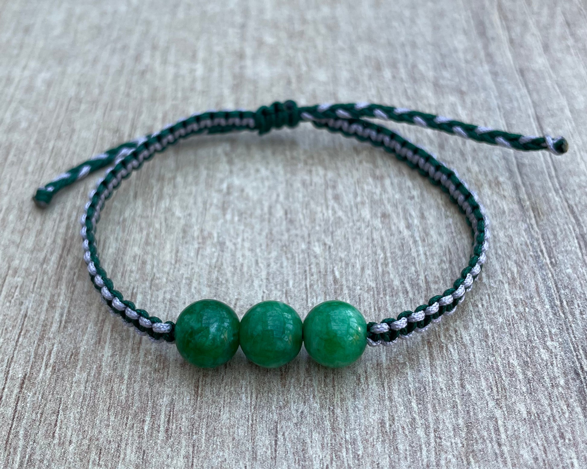 The string is in dark green and grey colour. The length is 16.5cm or longer with an adjustable sliding knot.
