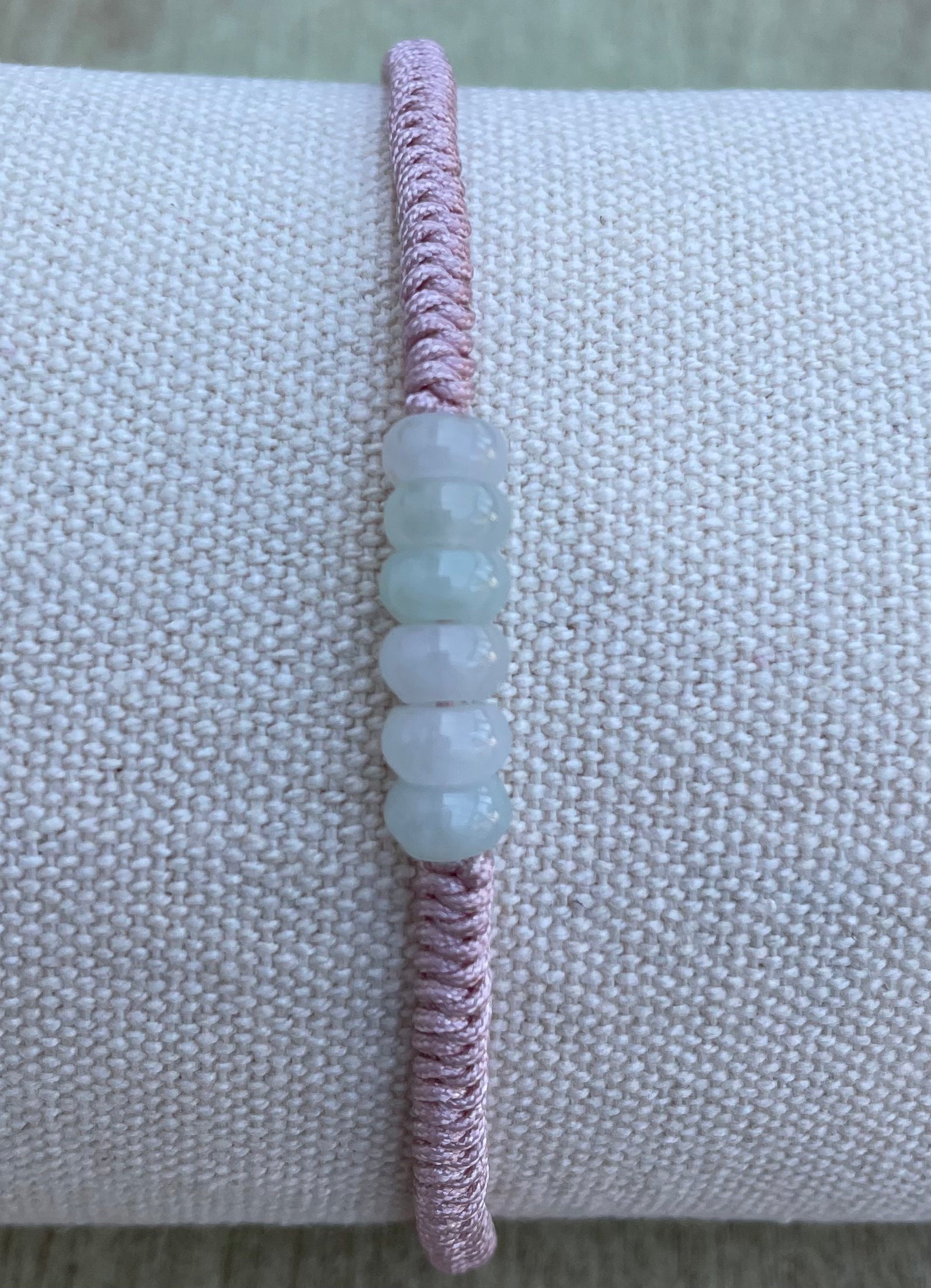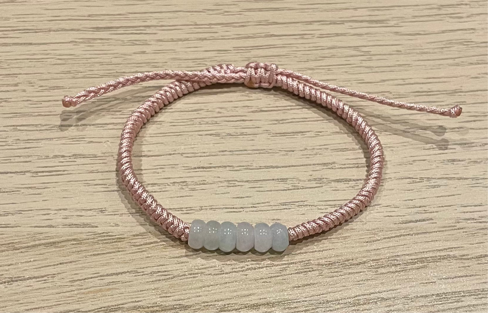 The string is in seashell pink colour, its length is 16.5cm or longer with adjustable sliding knot.